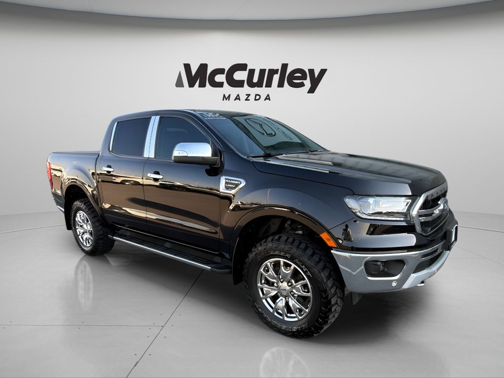 2019 Ford Ranger Lariat 4WD 10-Speed Automatic EcoBoost 2.3L I4 GTDi DOHC Turbocharged VCT Shadow Black McCurley Certified Certified, 4WD, 4x4 FX4 Off-Road Bodyside Decal, Body-Color Wheel-Lip Molding, Chrome Appearance Package, Chrome Door & Tailgate Handles, Chrome Exhaust Tip, Chrome Front & Rear Bumpers, Chrome Mirror Caps, Chrome Tow Hooks, Electronic-Locking Rear Differential, Exposed Front Tow Hooks, FX4 Off-Road Package, Off-Road Screen in Cluster, Off-Road Tuned Suspension, Terrain Management System, Unique Chrome Grille, Wheels: 18" Chrome-Like PVD, 4-Wheel Disc Brakes, 6 Speakers, ABS brakes, Air Conditioning, Brake assist, Class IV Trailer Hitch Receiver, Compass, Delay-off headlights, Driver door bin, Dual front impact airbags, Dual front side impact airbags, Electronic Stability Control, Exterior Parking Camera Rear, Front anti-roll bar, Front Bucket Seats, Front Center Armrest, Front wheel independent suspension, Fully automatic headlights, Illuminated entry, Low tire pressure warning, Occupant sensing airbag, Overhead airbag, Passenger door bin, Power steering, Power windows, Radio: AM/FM Stereo w/6 Speakers, Rear seat center armrest, Rear step bumper, Retractable Tonneau Box Cover, SecuriCode Keyless-Entry Keypad, Speed-sensing steering, Steering wheel mounted audio controls, Telescoping steering wheel, Tilt steering wheel, Traction control, Trailer Tow Package, Trip computer, Variably intermittent wipers, Voltmeter, 4WD, 4x4 FX4 Off-Road Bodyside Decal, Body-Color Wheel-Lip Molding, Chrome Appearance Package, Chrome Door & Tailgate Handles, Chrome Exhaust Tip, Chrome Front & Rear Bumpers, Chrome Mirror Caps, Chrome Tow Hooks, Electronic-Locking Rear Differential, Exposed Front Tow Hooks, FX4 Off-Road Package, Off-Road Screen in Cluster, Off-Road Tuned Suspension, Terrain Management System, Unique Chrome Grille, Wheels: 18" Chrome-Like PVD.