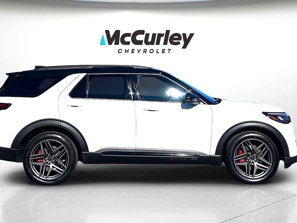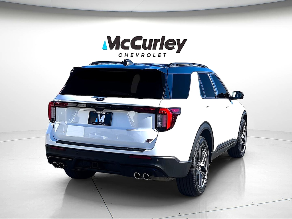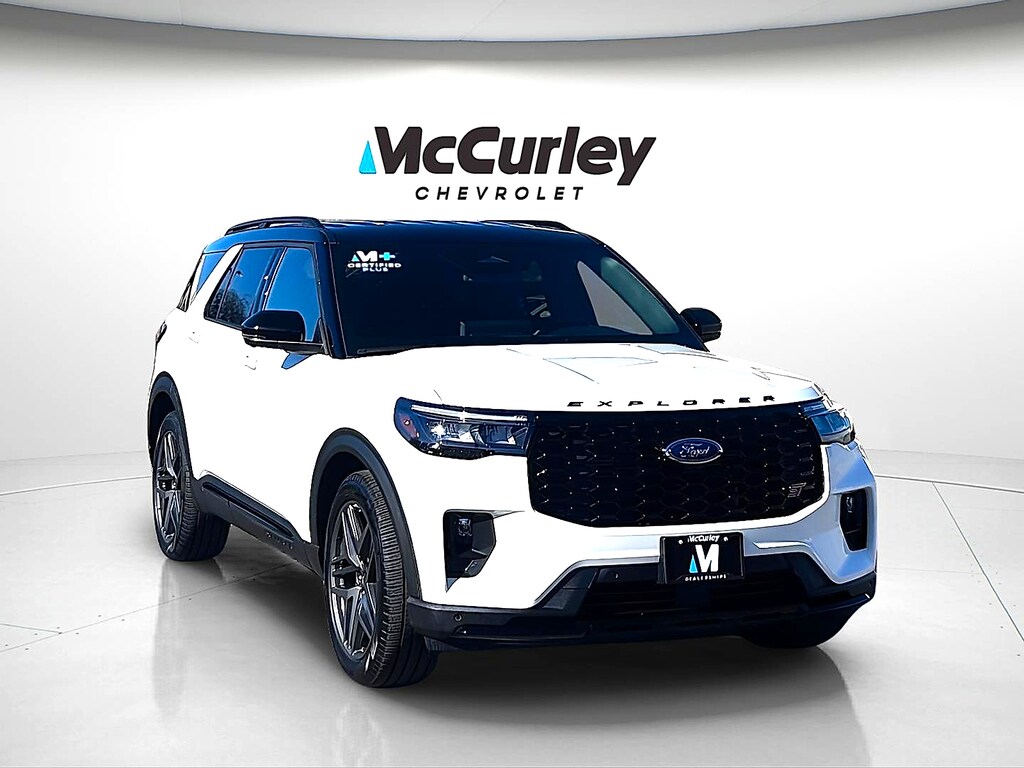This vehicle is McCurley Certified+ and includes: -5 Year / 100k Mile Powertrain Warranty* -Engine, Drive Assembly, Transmission, Seals and Gaskets Coverage* -102pt Mechanical & Appearance Inspection -McCurley Advantage- Repel Shield, Loyalty Rewards, Owner App -$0 Warranty Deductible -7 Day / 500 Mile Exchange Policy* -Certified Value Market Based Pricing -3 Month / 3000 Mile Limited Comprehensive Warranty* -Emergency Roadside Service -Rental Vehicle, Towing, Travel & Lodging Reimbursement *See dealer for complete coverage details. Coverage may vary by vehicle and mileage. Introducing the 2025 Ford Explorer ST 4WD, a stunning fusion of performance and elegance, featuring a striking Star White Metallic Tri-Coat exterior that commands attention on the road. Its refined Onyx interior offers a luxurious atmosphere, ensuring every journey is as comfortable as it is exhilarating. Under the hood, the Explorer ST is powered by a robust EcoBoost 3.0L V6 engine, delivering an impressive 400 horsepower for unmatched acceleration and an exhilarating driving experience. The twin-turbo technology and gasoline direct injection system ensure optimal performance while embracing efficiency with premium unleaded fuel. Designed for adventure and built for stability, the 4WD system provides superior traction, making it the ideal companion for both urban streets and rugged terrains. With its cutting-edge features and advanced technologies, the 2025 Ford Explorer ST seamlessly blends style, power, and practicality. Elevate your driving experience with this remarkable SUV that embodies dynamic capability and sophisticated design. Don't miss the chance to own this incredible vehicle-experience the Ford Explorer ST today!
