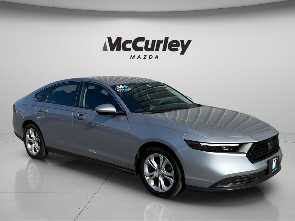 2023 Honda Accord LX FWD CVT 1.5T I4 DOHC 16V Turbocharged VTEC Lunar Silver Metallic McCurley Certified + Certified, Black w/Fabric Seat Trim, 4 Speakers, 4-Wheel Disc Brakes, ABS brakes, Adaptive Cruise Control: Adaptive Cruise Control (ACC) with Low-Speed Follow, Air Conditioning, Alloy wheels, AM/FM radio, Apple CarPlay/Android Auto, Auto High-beam Headlights, Automatic temperature control, Brake assist, Bumpers: body-color, Compass, Delay-off headlights, Driver door bin, Driver vanity mirror, Dual front impact airbags, Dual front side impact airbags, Electronic Stability Control, Emergency communication system: HondaLink Assist, Exterior Parking Camera Rear, Fabric Seat Trim, Four wheel independent suspension, Front anti-roll bar, Front Bucket Seats, Front Center Armrest, Front reading lights, Fully automatic headlights, Illuminated entry, Knee airbag, Lane departure: Lane Keeping Assist System (LKAS) active, Low tire pressure warning, Occupant sensing airbag, Outside temperature display, Overhead airbag, Overhead console, Panic alarm, Passenger door bin, Passenger vanity mirror, Power door mirrors, Power steering, Power windows, Radio data system, Radio: 160-Watt AM/FM Audio System, Rear anti-roll bar, Rear reading lights, Rear seat center armrest, Rear side impact airbag, Rear window defroster, Remote keyless entry, Security system, Speed control, Speed-sensing steering, Speed-Sensitive Wipers, Steering wheel mounted audio controls, Tachometer, Telescoping steering wheel, Tilt steering wheel, Traction control, Trip computer, Variably intermittent wipers, Wheels: 17" x 7.5" Blade Silver, Black w/Fabric Seat Trim.