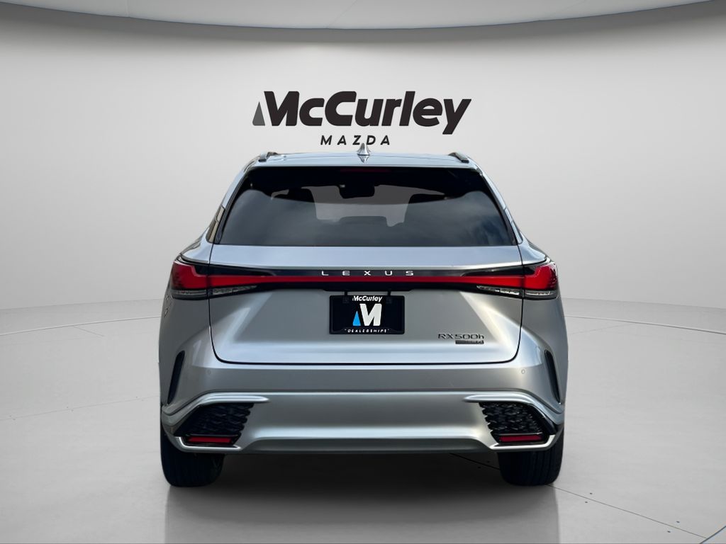 2023 Lexus RX 500h F SPORT Performance AWD 6-Speed Automatic 2.4L I4 PDI Hybrid Turbocharged DOHC 16V LEV3-SULEV30 271hp Iridium McCurley Certified + Certified, 2.4L I4 PDI Hybrid Turbocharged DOHC 16V LEV3-SULEV30 271hp, AWD, Black w/Dark Graphite Aluminum w/F SPORT NuLuxe Seat Trim, 21" Alloy Wheels, Active Cruise Control, Cold Area Package, Exterior Parking Camera Rear, Heated & Ventilated Front Seats, Heated and Ventilated Rear Seats, Panorama Glass Moonroof, Panoramic View Monitor, Power Liftgate, Windshield Wiper De-Icer, 12 Speakers, 3.74 Axle Ratio, 4-Wheel Disc Brakes, ABS brakes, Adaptive suspension, Air Conditioning, AM/FM radio: SiriusXM, Anti-whiplash front head restraints, Auto High-beam Headlights, Auto tilt-away steering wheel, Auto-dimming door mirrors, Auto-dimming Rear-View mirror, Auto-leveling suspension, Automatic temperature control, Brake assist, Bumpers: body-color, Compass, Delay-off headlights, Driver door bin, Driver vanity mirror, Dual front impact airbags, Dual front side impact airbags, Electronic Stability Control, Emergency communication system: Safety Connect (10-year trial), Four wheel independent suspension, Front anti-roll bar, Front Bucket Seats, Front Center Armrest, Front dual zone A/C, Front fog lights, Front reading lights, Fully automatic headlights, Garage door transmitter: HomeLink, Heads-Up Display, Heated door mirrors, Illuminated entry, Leather Shift Knob, Leather/Ultra Suede Seat Trim, Low tire pressure warning, Memory seat, Navigation System, Occupant sensing airbag, Outside temperature display, Overhead airbag, Overhead console, Panic alarm, Passenger door bin, Passenger vanity mirror, Power door mirrors, Power driver seat, Power passenger seat, Power steering, Power windows, Radio data system, Radio: Lexus Interface, Rain sensing wipers, Rear air conditioning, Rear anti-roll bar, Rear reading lights, Rear seat center armrest, Rear side impact airbag, Rear window defroster, Rear window wiper, Remote keyless entry, Security system, Speed-sensing steering, Split folding rear seat, Spoiler, Sport steering wheel, Steering wheel memory, Steering wheel mounted audio controls, Telescoping steering wheel, Tilt steering wheel, Traction control, Trip computer, Turn signal indicator mirrors, Variably intermittent wipers, Ventilated front seats, Wireless Apple CarPlay/Wireless Android Auto, 2.4L I4 PDI Hybrid Turbocharged DOHC 16V LEV3-SULEV30 271hp, AWD, Black w/Dark Graphite Aluminum w/F SPORT NuLuxe Seat Trim, 21" Alloy Wheels, Active Cruise Control, Cold Area Package, Exterior Parking Camera Rear, Heated & Ventilated Front Seats, Heated and Ventilated Rear Seats, Panorama Glass Moonroof, Panoramic View Monitor, Power Liftgate, Windshield Wiper De-Icer.
