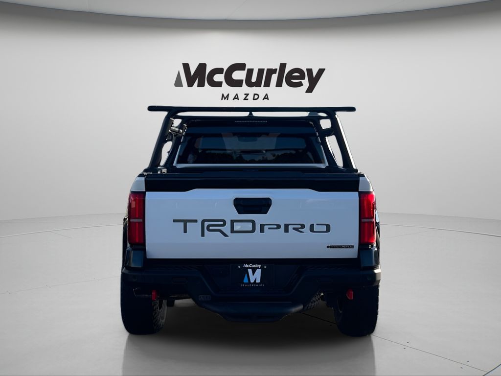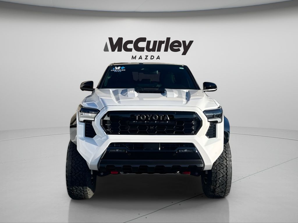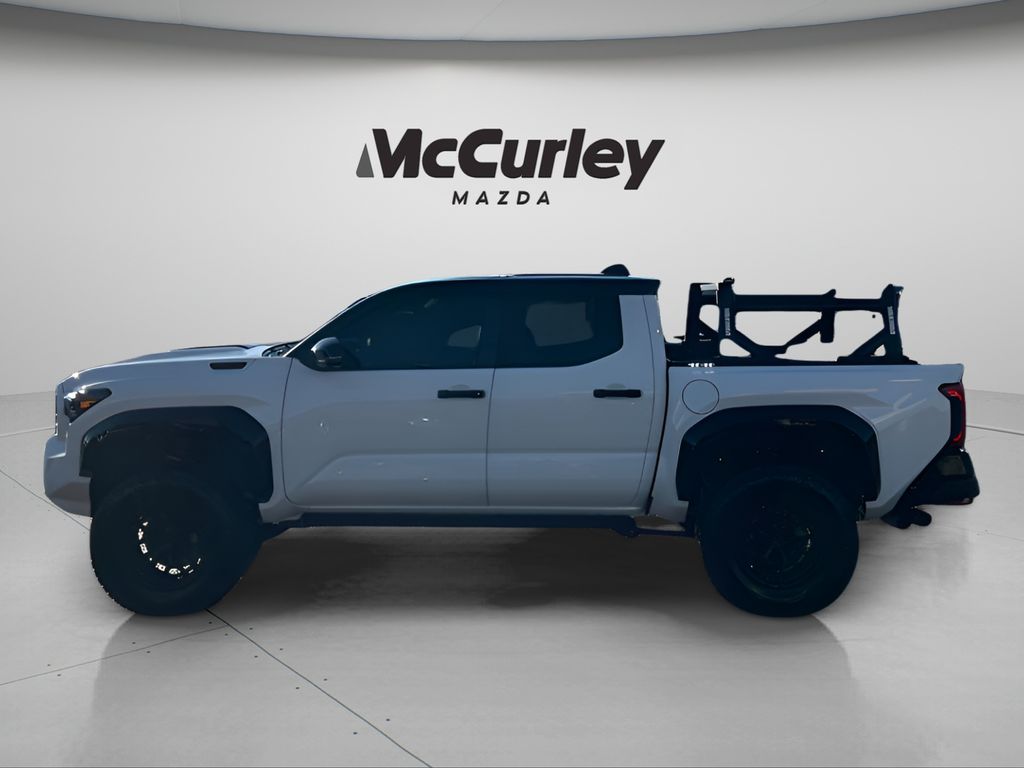2025 Toyota Tacoma Hybrid TRD Pro 4WD 8-Speed Automatic 2.4L I4 PDI Hybrid Turbocharged DOHC 16V Ice Cap w/Black Roof McCurley Certified + Certified, 2.4L I4 PDI Hybrid Turbocharged DOHC 16V, Htd & Vent TRD Pro IsoDynamic Performance Seats, Tow Tech Package, TRD Pro Package, 4-Wheel Disc Brakes, ABS brakes, Air Conditioning, AM/FM radio: SiriusXM, Anti-whiplash front head restraints, Apple CarPlay/Android Auto, Auto High-beam Headlights, Auto-dimming Rear-View mirror, Automatic temperature control, Brake assist, Bumpers: body-color, Driver door bin, Driver vanity mirror, Dual front impact airbags, Dual front side impact airbags, Electronic Stability Control, Emergency communication system: Safety Connect (1-year trial), Exterior Parking Camera Rear, Four wheel independent suspension, Front anti-roll bar, Front Bucket Seats, Front Center Armrest, Front fog lights, Front reading lights, Fully automatic headlights, Heated door mirrors, Illuminated entry, Knee airbag, Leather Shift Knob, Leather steering wheel, Low tire pressure warning, Navigation system: Drive Connect (1 year trial) includes Cloud Navigation with real time traffic and Google POI, Occupant sensing airbag, Outside temperature display, Overhead airbag, Overhead console, Panic alarm, Passenger door bin, Passenger vanity mirror, Power door mirrors, Power steering, Power windows, Rear step bumper, Rear window defroster, Remote keyless entry, Security system, Speed control, Speed-sensing steering, Split folding rear seat, Steering wheel mounted audio controls, Tachometer, Telescoping steering wheel, Tilt steering wheel, Traction control, Trip computer, Turn signal indicator mirrors, Variably intermittent wipers, 2.4L I4 PDI Hybrid Turbocharged DOHC 16V, Htd & Vent TRD Pro IsoDynamic Performance Seats, Tow Tech Package, TRD Pro Package.