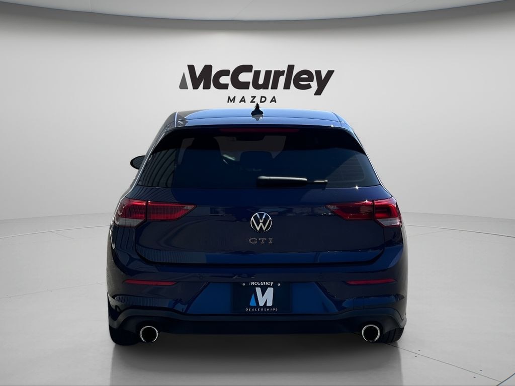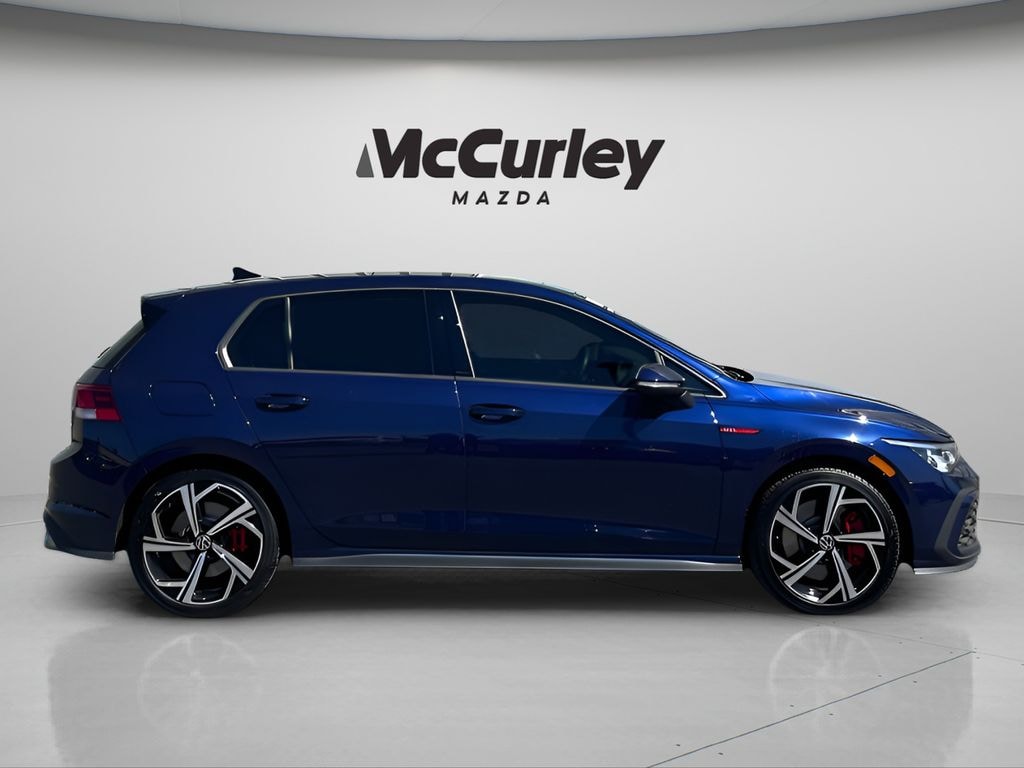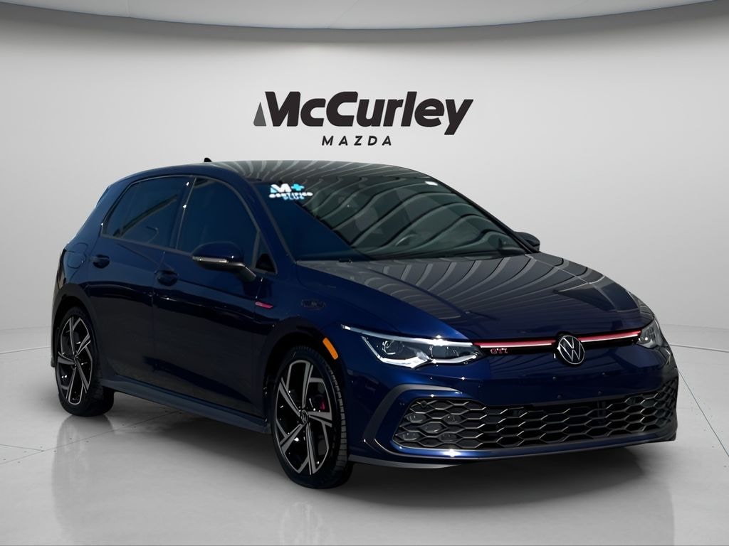 2024 Volkswagen Golf GTI 2.0T SE FWD 7-Speed DSG Automatic with Tiptronic 2.0L TSI DOHC Atlantic Blue Metallic McCurley Certified + Certified, Actively Ventilated Front Seats, Navigation System, Padded Door Panels w/Leatherette Inserts, SE Leather Seats Package, Vienna Leather Seating Surfaces w/Perf Inserts, 4-Wheel Disc Brakes, 9 Speakers, ABS brakes, Air Conditioning, Alloy wheels, AM/FM radio: SiriusXM with 360L, Auto-dimming Rear-View mirror, Automatic temperature control, Brake assist, Bumpers: body-color, Cloth Seating Surfaces, Compass, Delay-off headlights, Driver door bin, Driver vanity mirror, Dual front impact airbags, Dual front side impact airbags, Electronic Stability Control, Emergency communication system: VW Car-Net Safe & Secure 5-year, Exterior Parking Camera Rear, Forward collision: FCW w/Autonomous Emergency Braking mitigation, Four wheel independent suspension, Front anti-roll bar, Front Bucket Seats, Front Center Armrest, Front fog lights, Front reading lights, Fully automatic headlights, harman/kardon® Speakers, Heated door mirrors, Heated front seats, Heated Front Top Sport Seats, Heated steering wheel, Illuminated entry, Lane Departure Warning System, Leather steering wheel, Low tire pressure warning, Occupant sensing airbag, Outside temperature display, Overhead airbag, Overhead console, Panic alarm, Passenger door bin, Passenger vanity mirror, Power door mirrors, Power driver seat, Power moonroof: Panoramic, Power passenger seat, Power steering, Power windows, Radio data system, Radio: MIB3 Discover Pro w/10" Touchscreen Navi, Rain sensing wipers, Rear anti-roll bar, Rear reading lights, Rear seat center armrest, Rear window defroster, Rear window wiper, Remote keyless entry, Security system, Speed control, Speed-sensing steering, Speed-Sensitive Wipers, Split folding rear seat, Spoiler, Sport steering wheel, Steering wheel mounted audio controls, Tachometer, Telescoping steering wheel, Tilt steering wheel, Traction control, Trip computer, Turn signal indicator mirrors, Variably intermittent wipers, Wheels: 18" 2-Tone Machined Alloy, Actively Ventilated Front Seats, Navigation System, Padded Door Panels w/Leatherette Inserts, SE Leather Seats Package, Vienna Leather Seating Surfaces w/Perf Inserts.